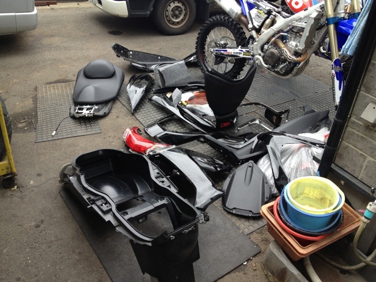 んでまた洗車 Author Masasy Date 2012年6月11日 さすがのマディーでしたので、外装外して再度洗車です。 もちろん、TK1SUPERWASHでね ブラシは必要ありません 擦らずOK したっけ、ケルヒャーのガン ジョイント部のホースから水漏れ 高圧部分なんで、オレの手には負