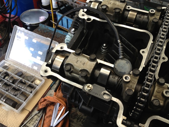 バルブクリアランス&載っけます Author Masasy Date 2012年11月8日 XJ750E このエンジンはシムタイプ 長期保管で、シムの油っけが無くなり表面か腐食してたのも有りましたんで、クリアランス調整しながら交換です。 これにて、エンジン全ての作業は完了 載っけますよ〜