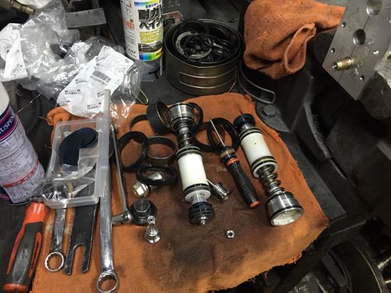 フロントはバネレートを下げたかったんですが、間に合わなかったんでシムや油面の調整で対処しました。