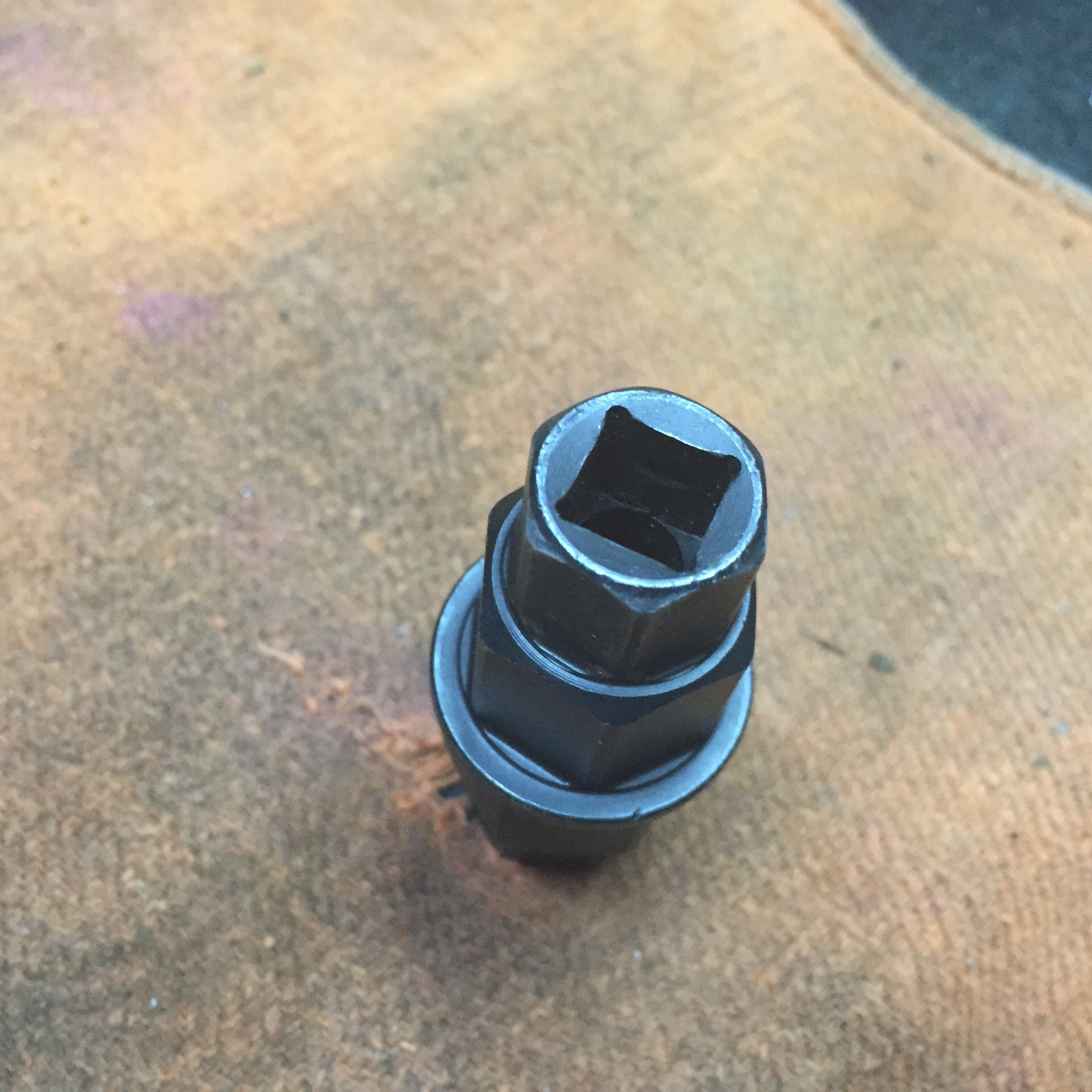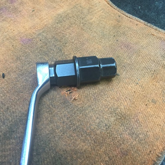 こんな風にメガネレンチをかけても良いし、内側は3/8の凸ソケットになってるんで、バーレンチを使っても良いと思います。