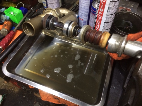 ヘッド完了、リアサス完了 Author Masasy Date 2014年1月8日 Comments: Leave a comment 中古整備の続きです バルブ関係は全く問題無し 初期馴染み位の状態でした! きっちりすり合わせして、カーボン除去して組みました。 リアサスのオーバーホール 2年ノーメンテだと、こんな感じですね まだキレイな方かなぁ〜 明日はピストン組んで前周りまで整備できるかなぁ〜 明日は天気悪いらしいからなぁ