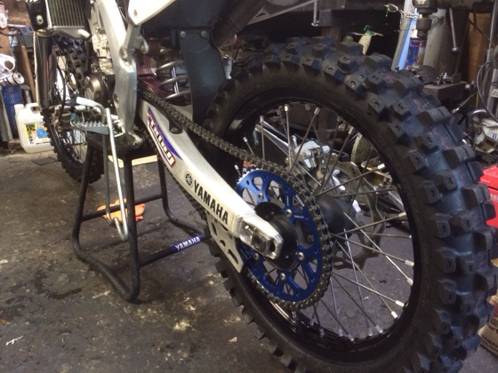 今日はココまで Author Masasy Date 2014年1月9日 Comments: Leave a comment 黙々と作業してたらもうこんな時間 フロント周りは後日です… 黒リム、黒ハブ、青スプロケ、黒チェーン(ノーマル鉄) カッコイイ!