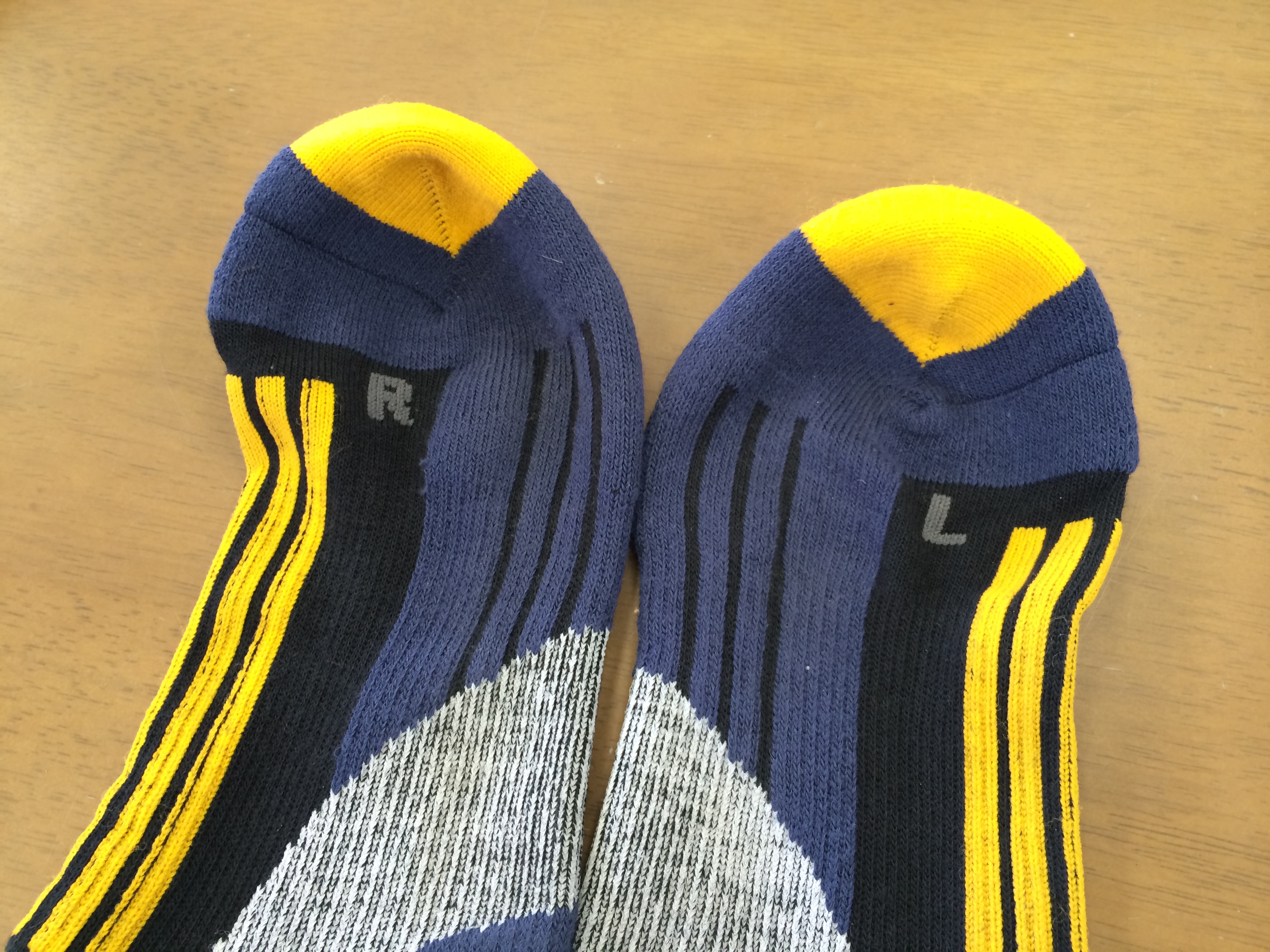 左右独立の立体設計との事でつま先のサイド部分にはちゃんとマークされてますよ。