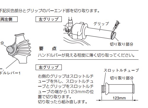 ガード類をつけちゃうとその意味を果たさなくなりますが、あの端っこの凸がないとマディーの時やギャップでふられた時にグリップから手がすっぽ抜けしてしまいます。ご自分のマシンのグリップを見てみてください。意外とエンド部のダイヤの凸がへってると思います