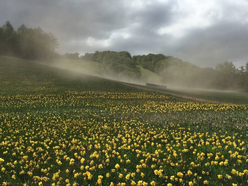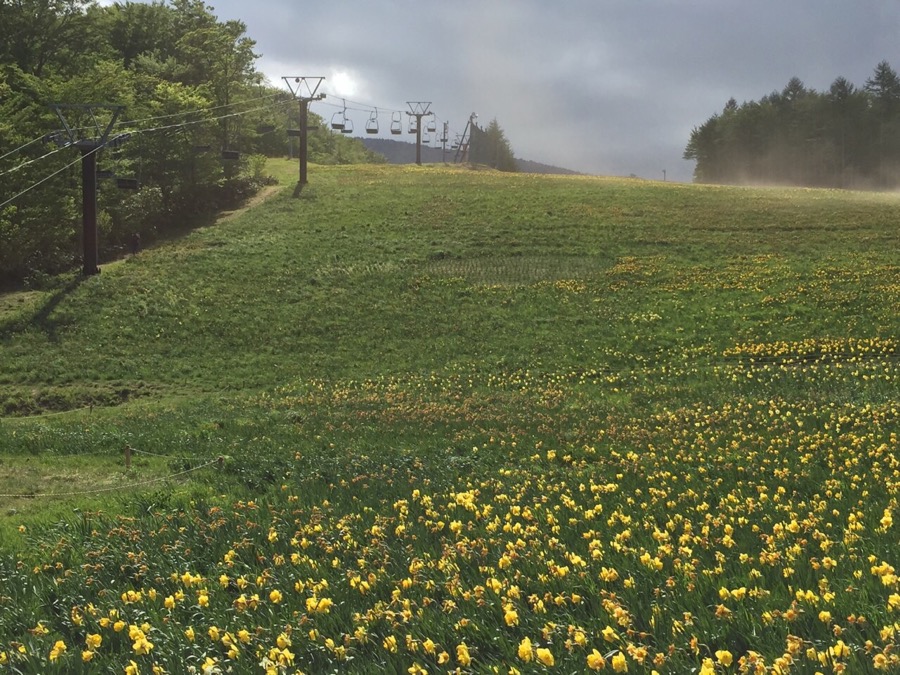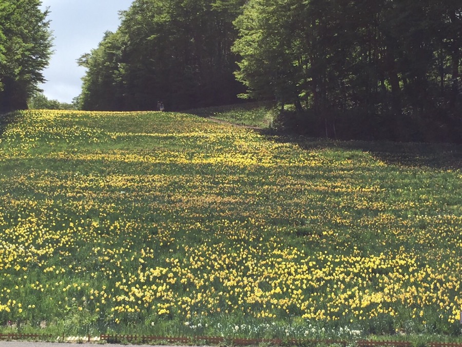 宮城蔵王えぼしスキー場では、水仙まつりが開催されてました。ゲレンデ一面にはご覧の通り水仙が沢山咲いてました(満開のピークは過ぎちゃってました)